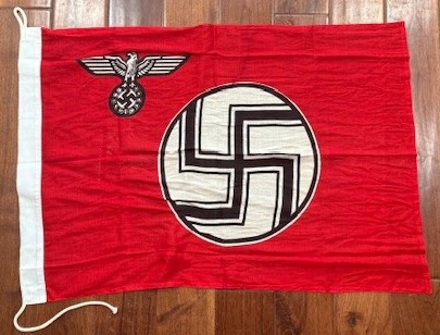 The Reich Service Flag was to be used by all public administrative authorities, including the Diplomatic Service, the German State railways, the Reichsautobahn and Reichsbank authorities, and vessels on inland waterways. These are high quality flags, being screen printed on woven cotton fabric and featuring white canvas binding along the rope edge, with extra, reinforcing stitching along the other three edges. They are very good copies of the originals, with correct proportions and excellent details.