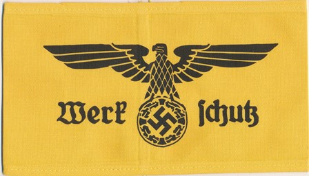 This Service Werkschutz Armband is a great example of an armband that is not easy to find. The Werkschutz were a sort of factory protection police, employed by the factories but under the supervision of the Air Ministry. The Werkschutz (Factory Protection Police) was an organization created in 1938 to protect important industrial works, and factories. Consisting of of three branches: